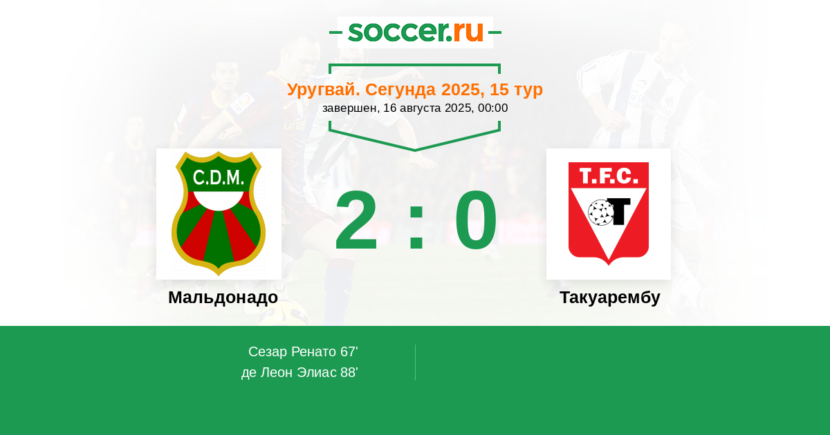 | Эспиндола Матиас (2) | Лучшие бомбардиры | Соса Гвидо (1) |