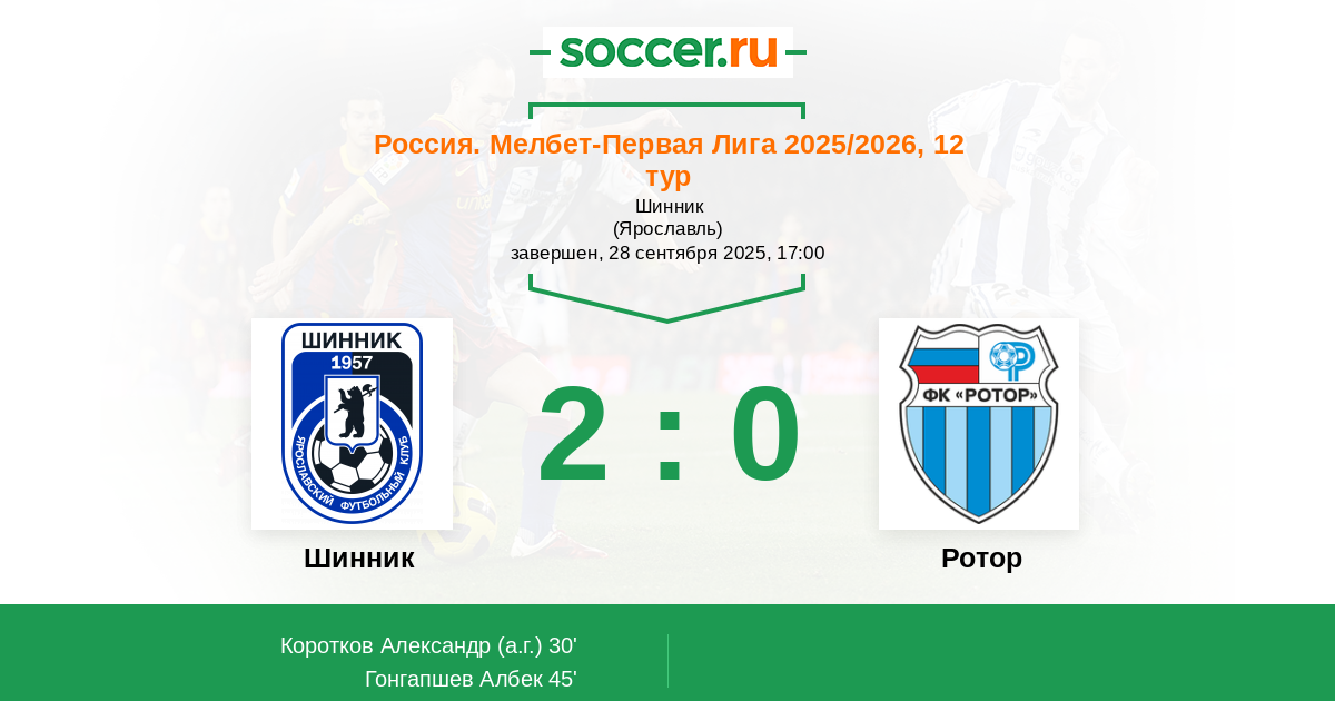 | Шинник | 34:37 | 20:12 | 14:25 |