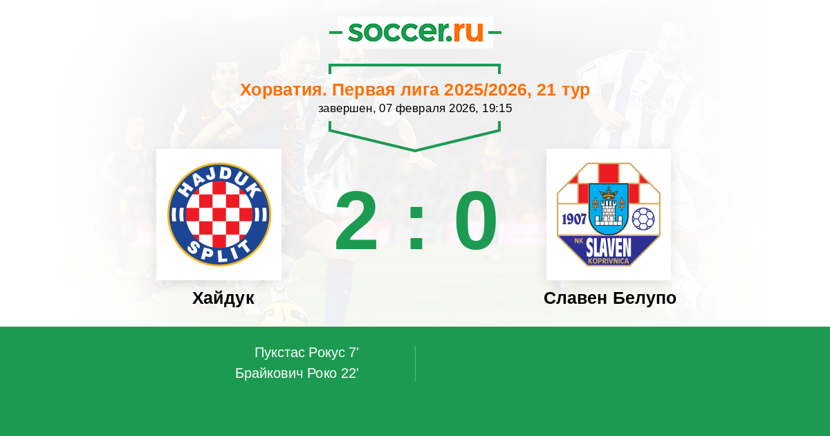 | Хайдук | 120:52 | 77:21 | 43:31 |