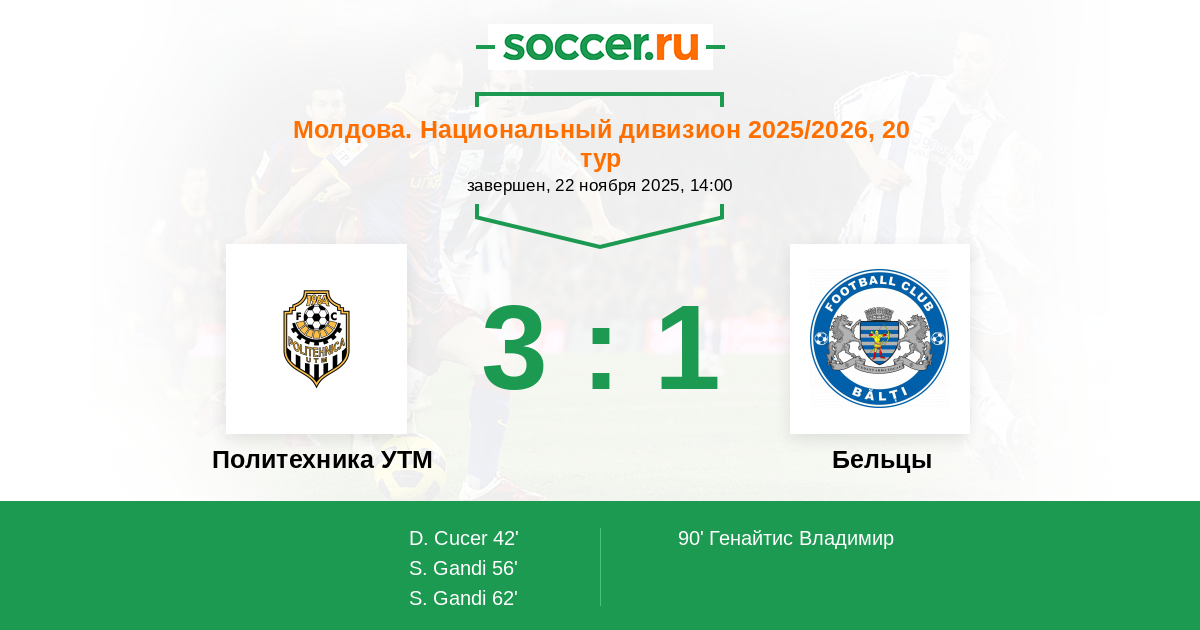 | Бельцы | 4:2 | 3:2 | 1:0 |