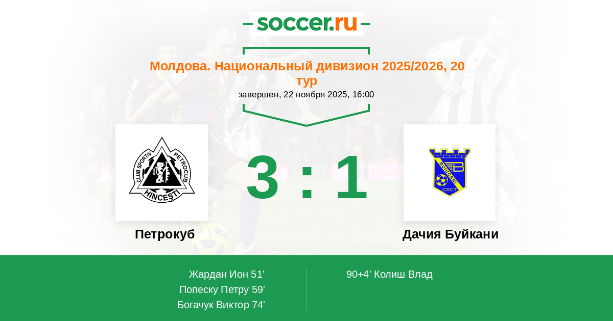 | Паскалуча Кристиан (3) | Лучшие бомбардиры | Страйстару Дмитрий (1) |