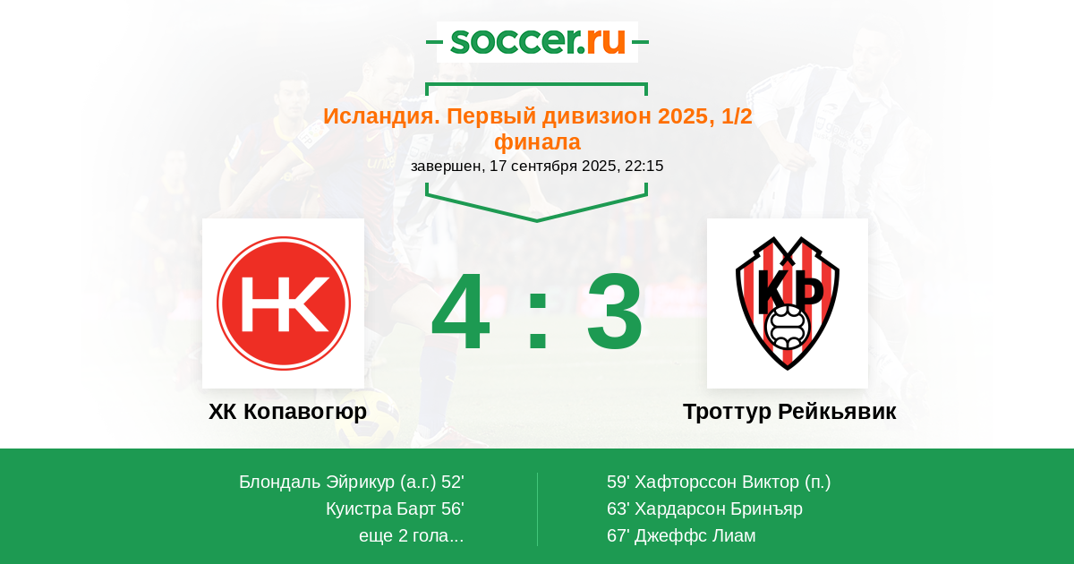 | ХК Копавогюр | 10:6 | 5:2 | 5:4 |