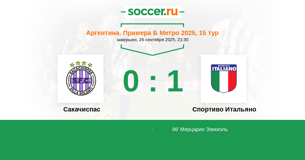 | Сакачиспас | Спортиво Итальяно | |