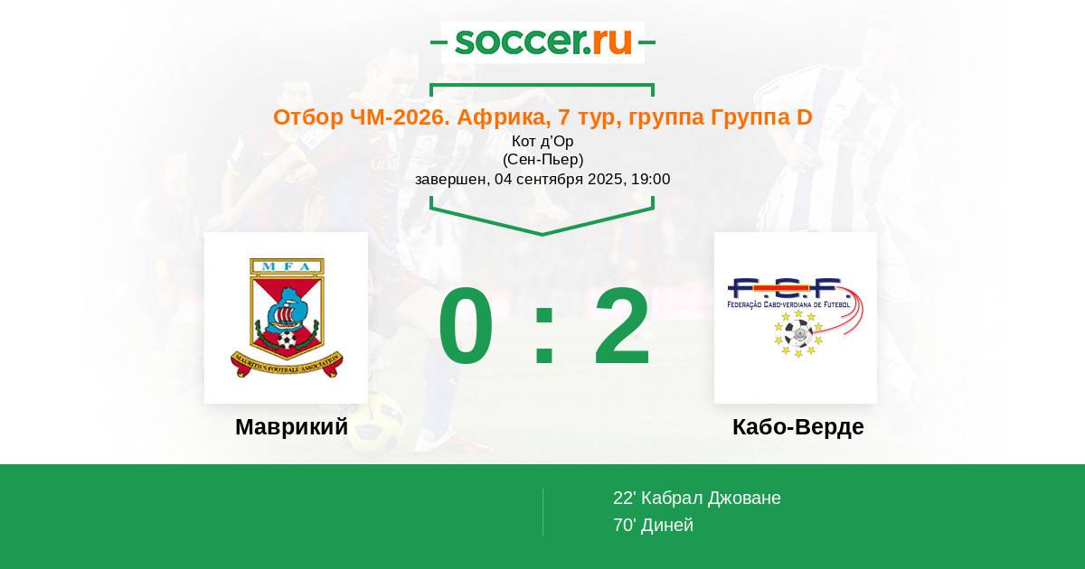 | Кабо-Верде | 1:0 | 1:0 | 0:0 |