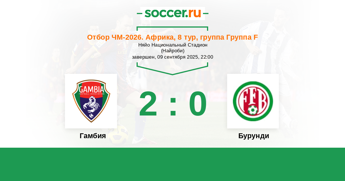 | Гамбия | 2:3 | 0:0 | 2:3 |