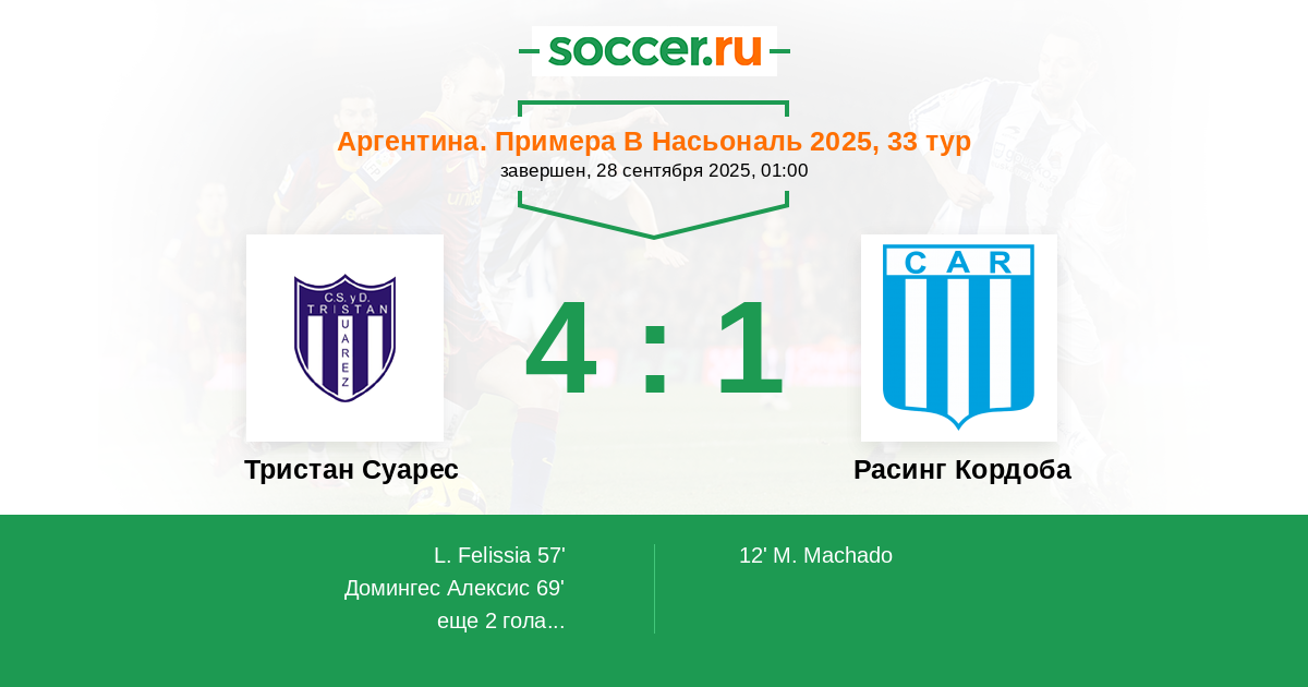 | Расинг Кордоба | 5:7 | 3:3 | 2:4 |