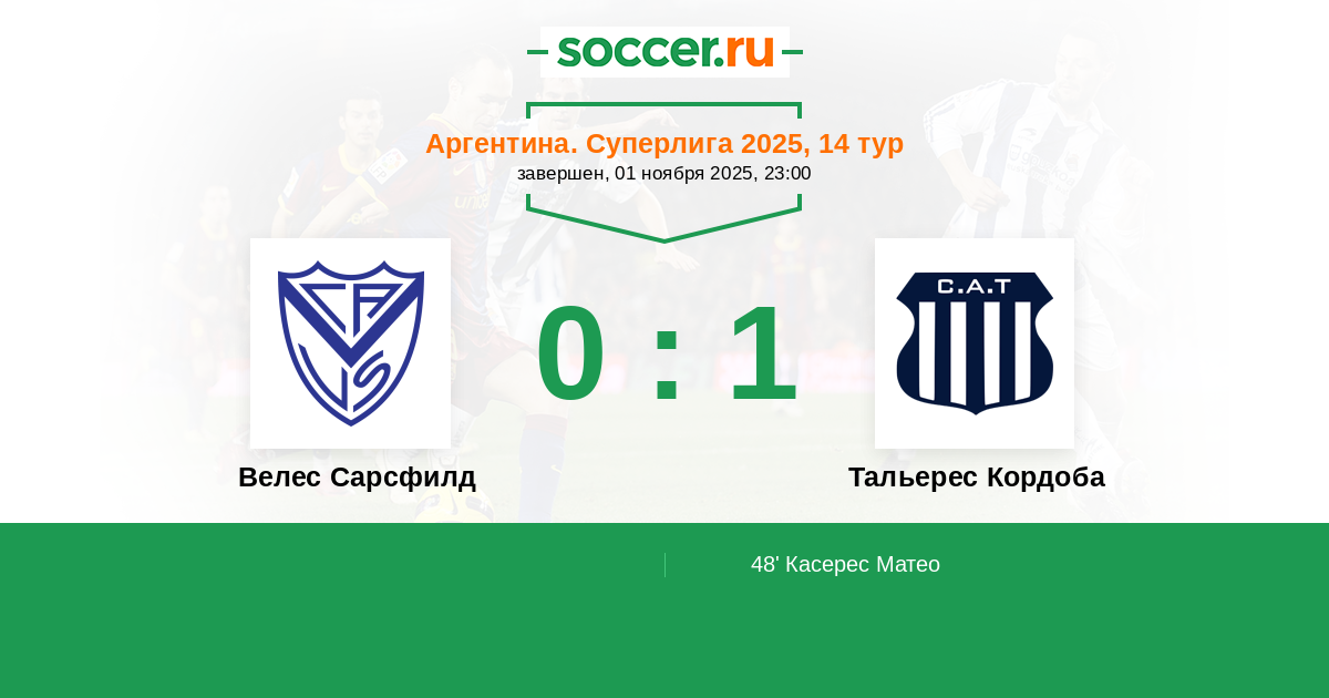 | Велес Сарсфилд | Тальерес Кордоба | |