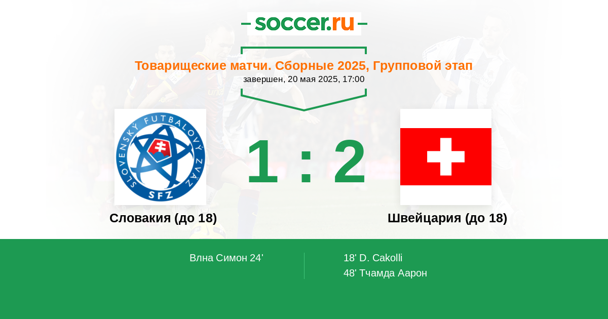 | Швейцария (до 18) | 2:0 | 0:0 | 2:0 |
