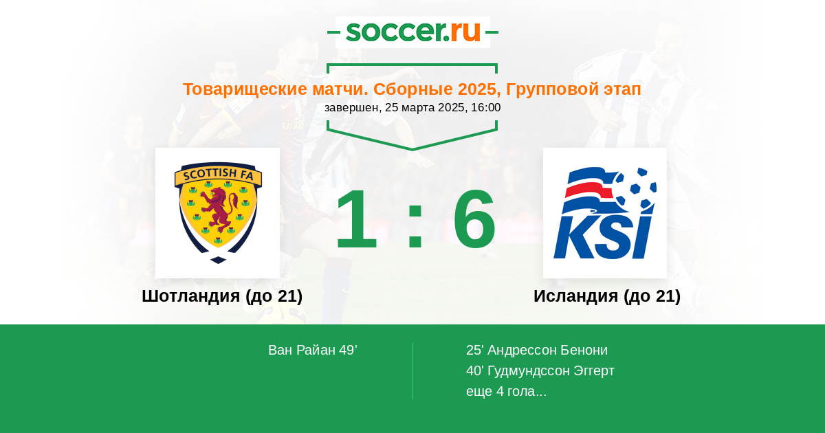 | Исландия (до 21) | 2:0 | 2:0 | 0:0 |