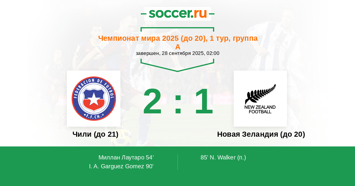 | Чили (до 21) | Новая Зеландия (до 20) | |