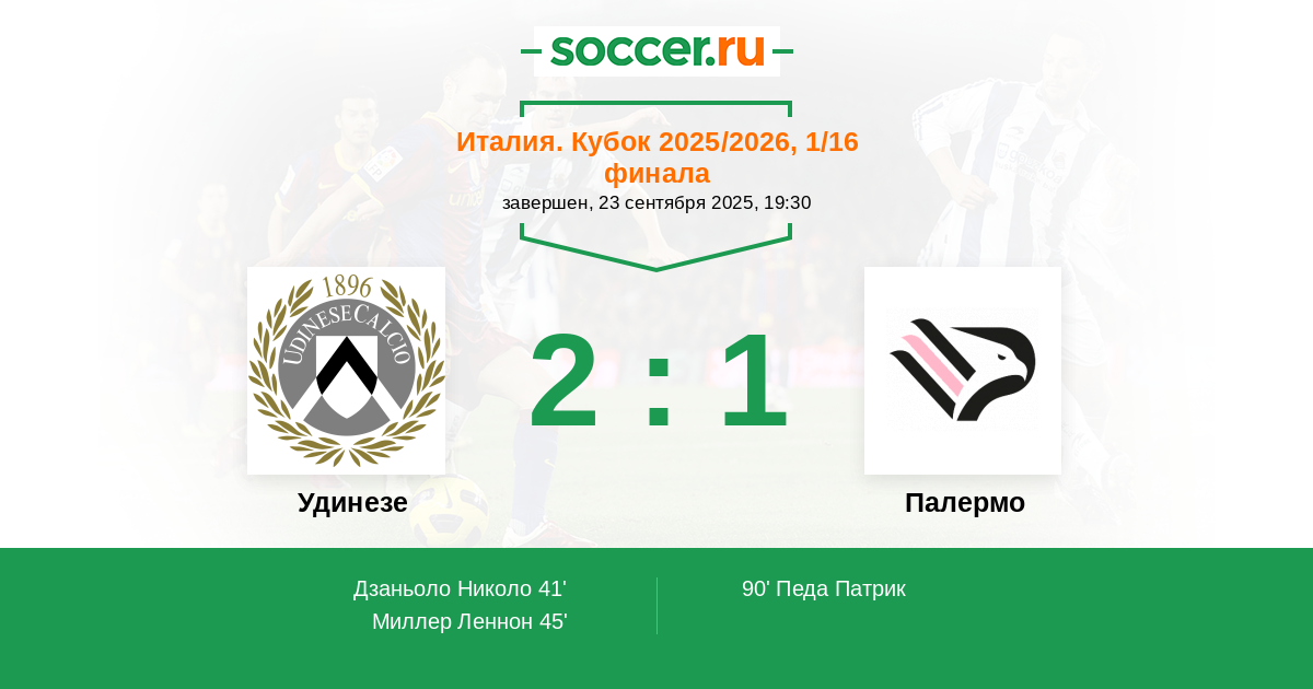 | Палермо | 25:35 | 14:19 | 11:16 |