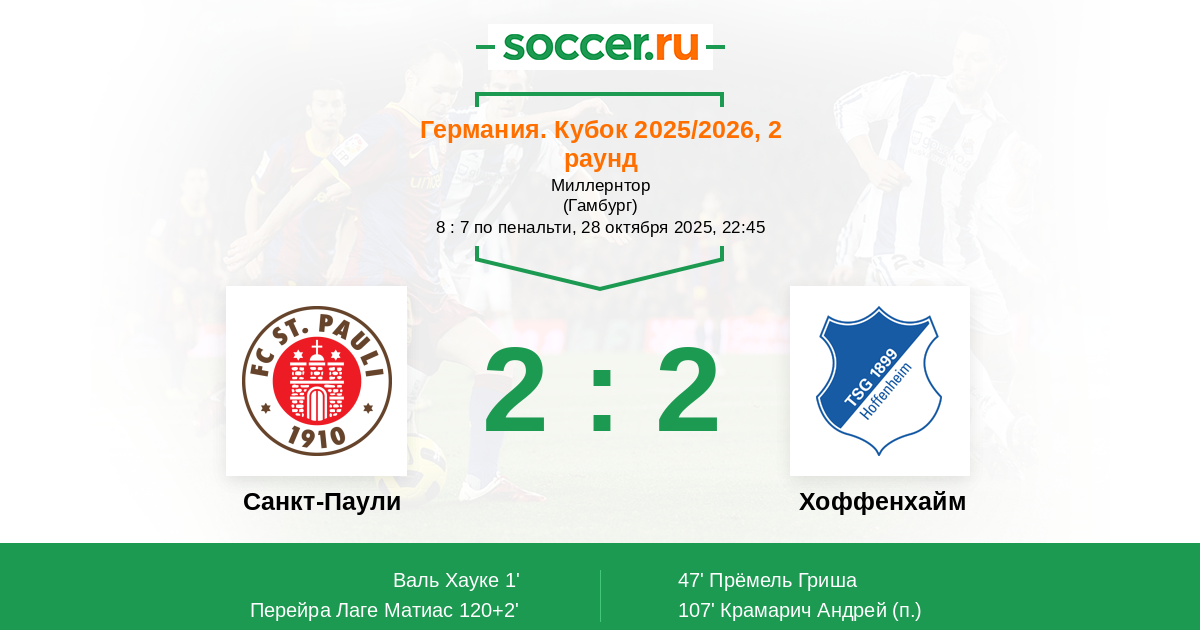 | Хоффенхайм | 8:9 | 3:5 | 5:4 |