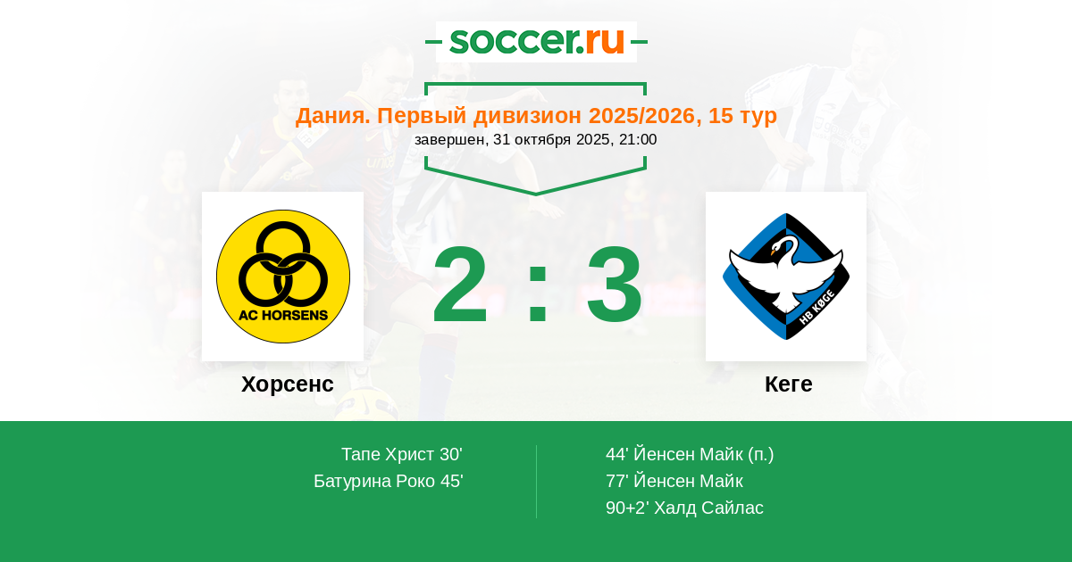 | Хорсенс | 27:24 | 15:9 | 12:15 |