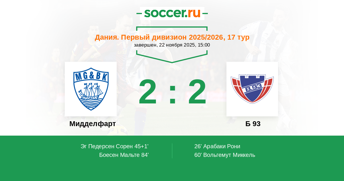 | Мидделфарт | 0:1 | 0:0 | 0:1 |