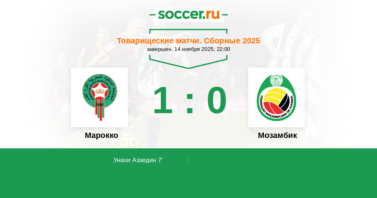 | Мозамбик | 0:4 | 0:0 | 0:4 |