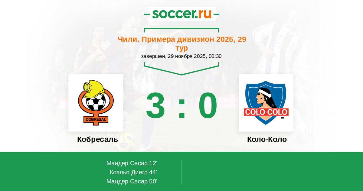 | Чили. Примера дивизион | 44 | 12 | 24 | 8 |
