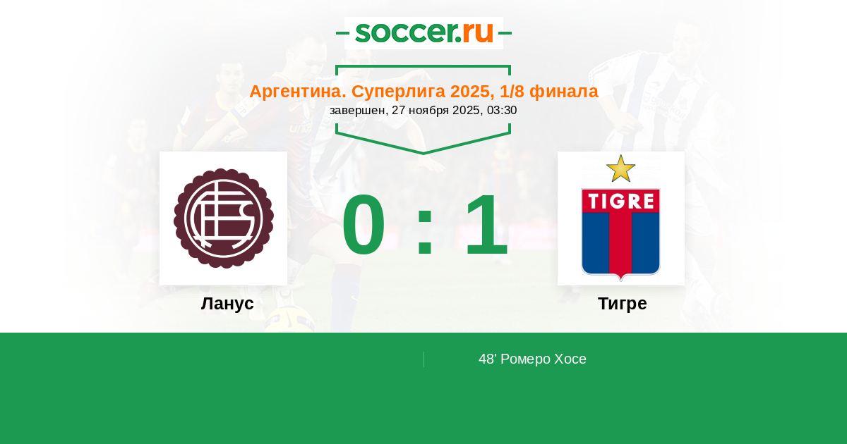 | Ланус | 39:25 | 22:10 | 17:15 |