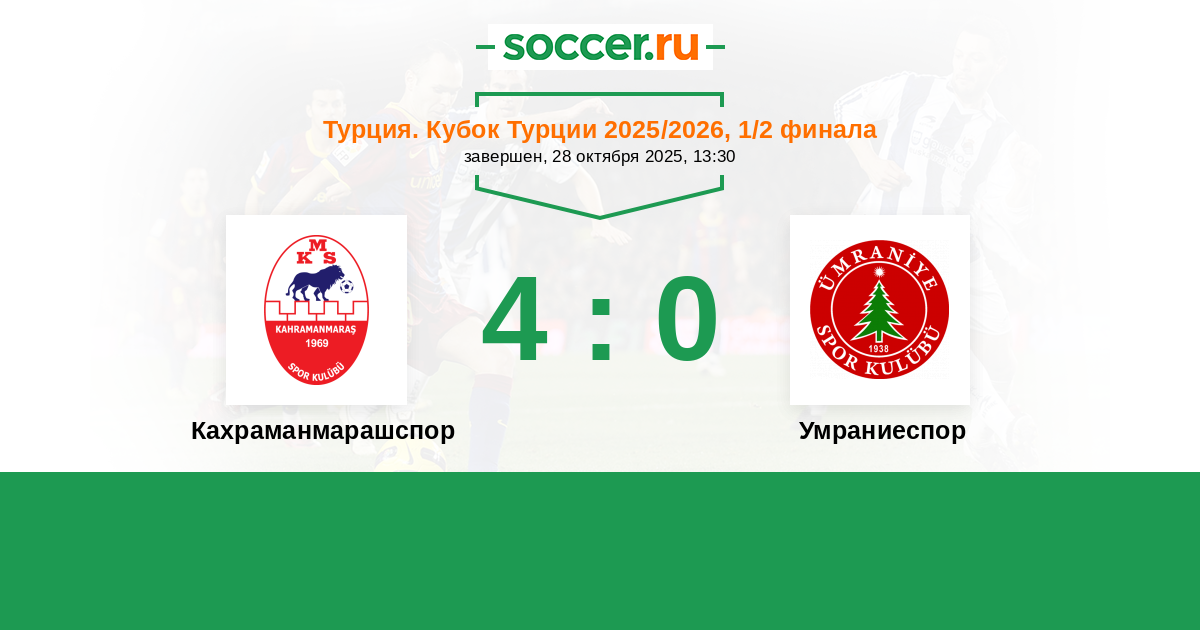 | Умраниеспор | 10:2 | 6:2 | 4:0 |