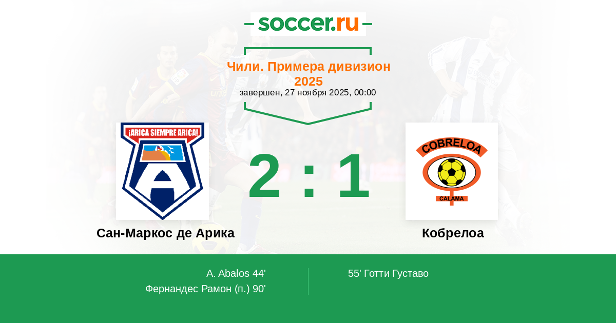 Кобрелоа 2:0 Сан-Маркос де Арика