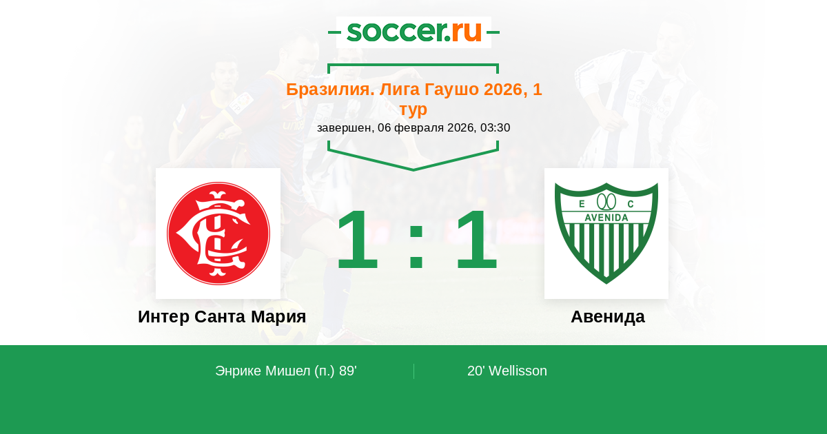 | Интер Санта Мария | 1:0 | 1:0 | 0:0 |