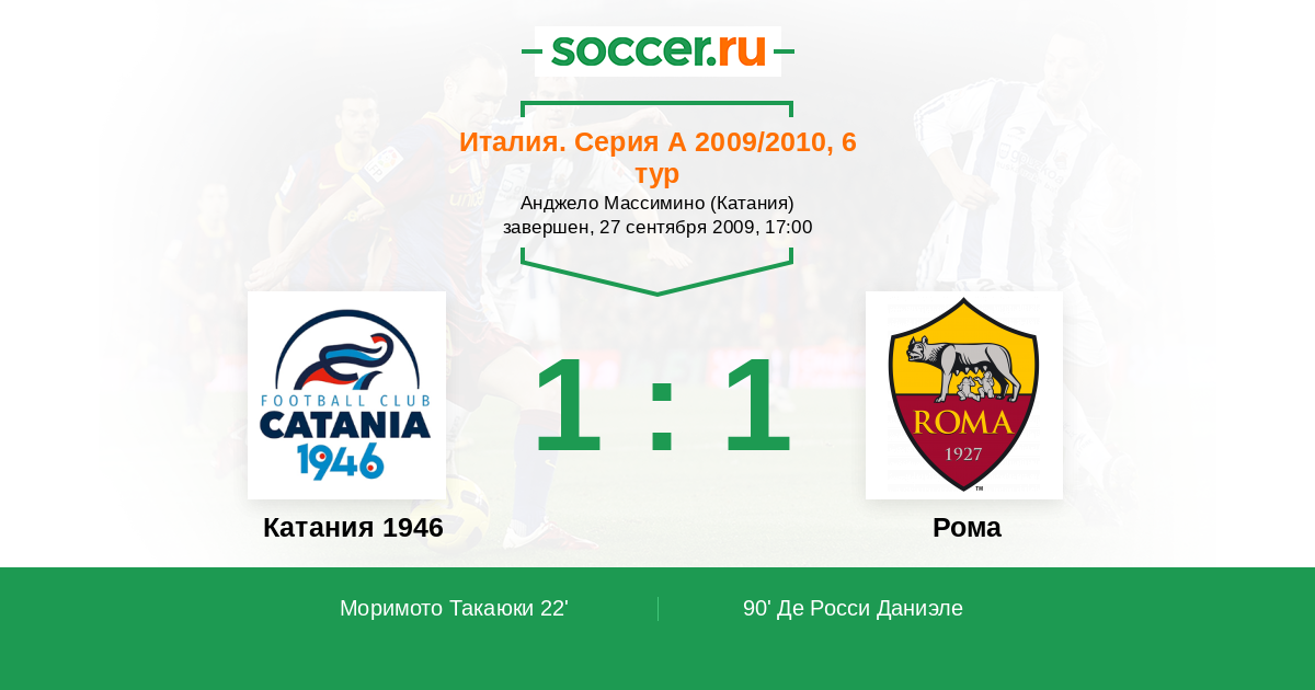 | Катания 1946 | 21:26 | 12:6 | 9:20 |