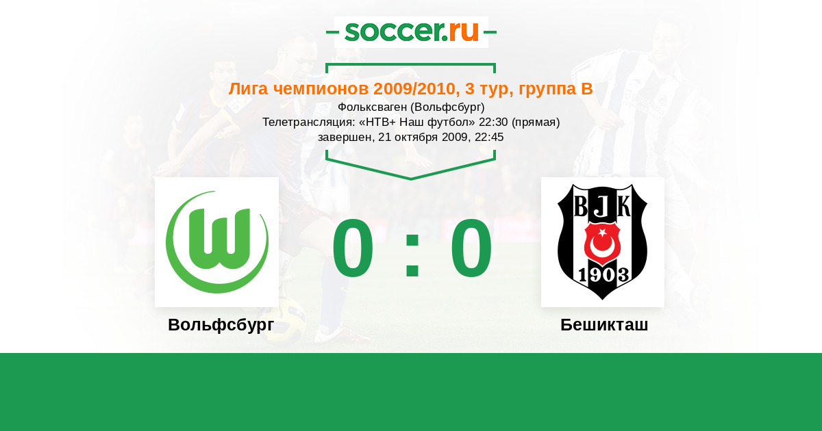 Вольфсбург, Фольксваген Телетрансляция: "НТВ+ Наш футбол" 22:30 (прямая)