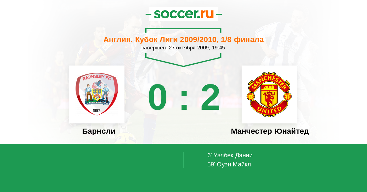 | Барнсли | Манчестер Юнайтед | |