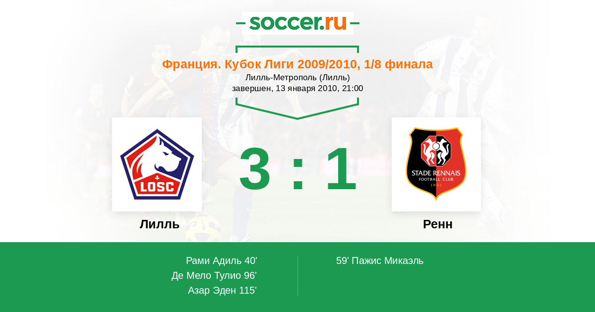 | Франция. Кубок Лиги | 1 | 0 | 0 | 1 |