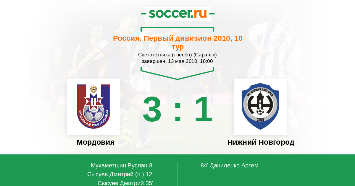 | Нижний Новгород | 3:10 | 1:4 | 2:6 |