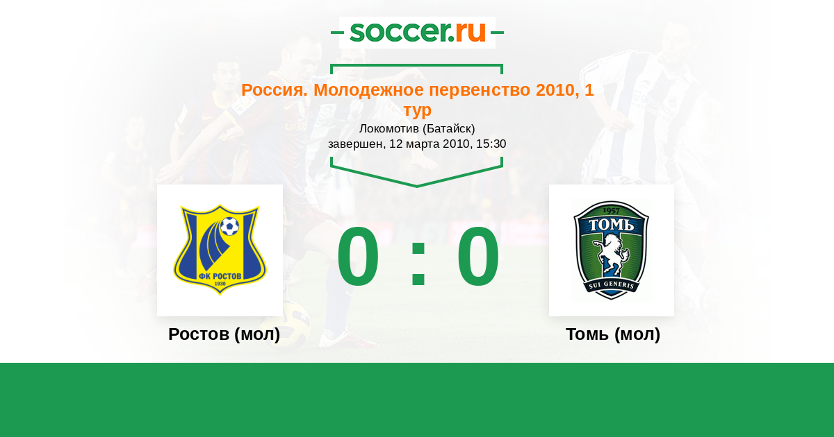 | Ростов (мол) | 10:18 | 7:6 | 3:12 |