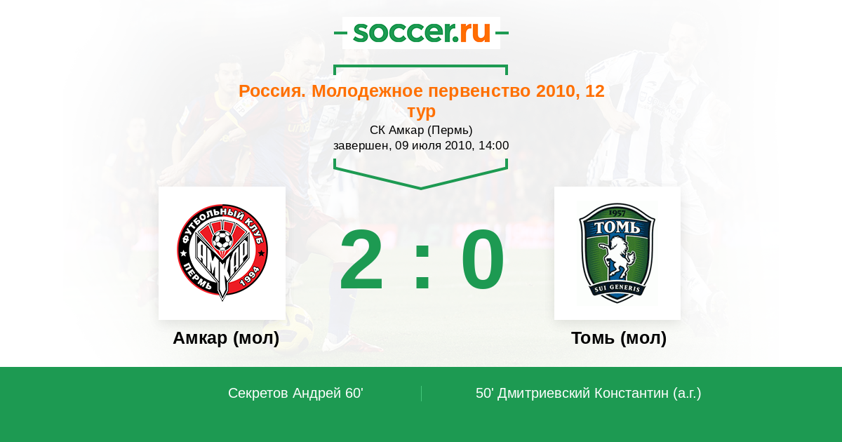 Томь (мол) 2:0 Амкар (мол)