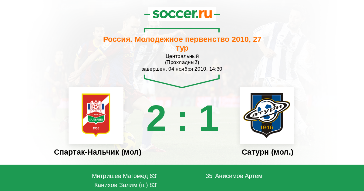 | Спартак-Нальчик (мол) | Сатурн (мол.) | |