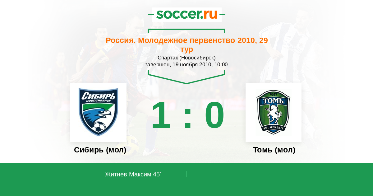 | Сибирь (мол) | 3:1 | 0:0 | 3:1 |