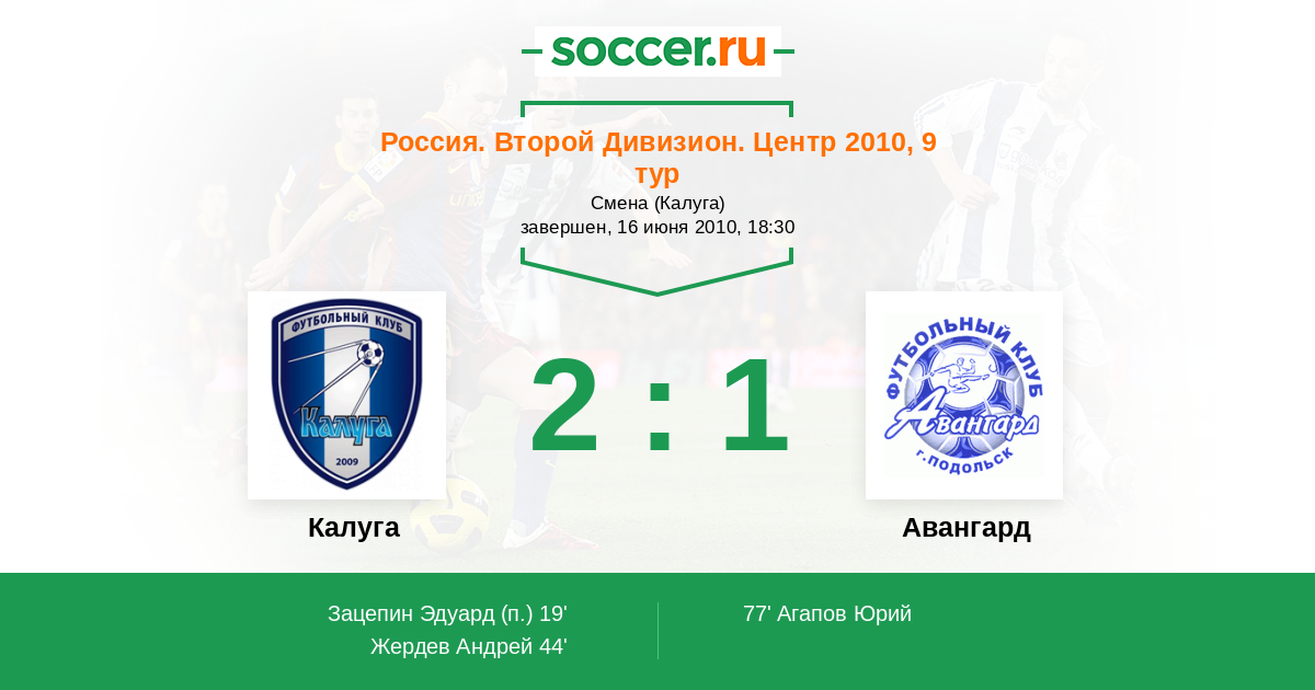 | Калуга | 1:2 | 0:0 | 1:2 |