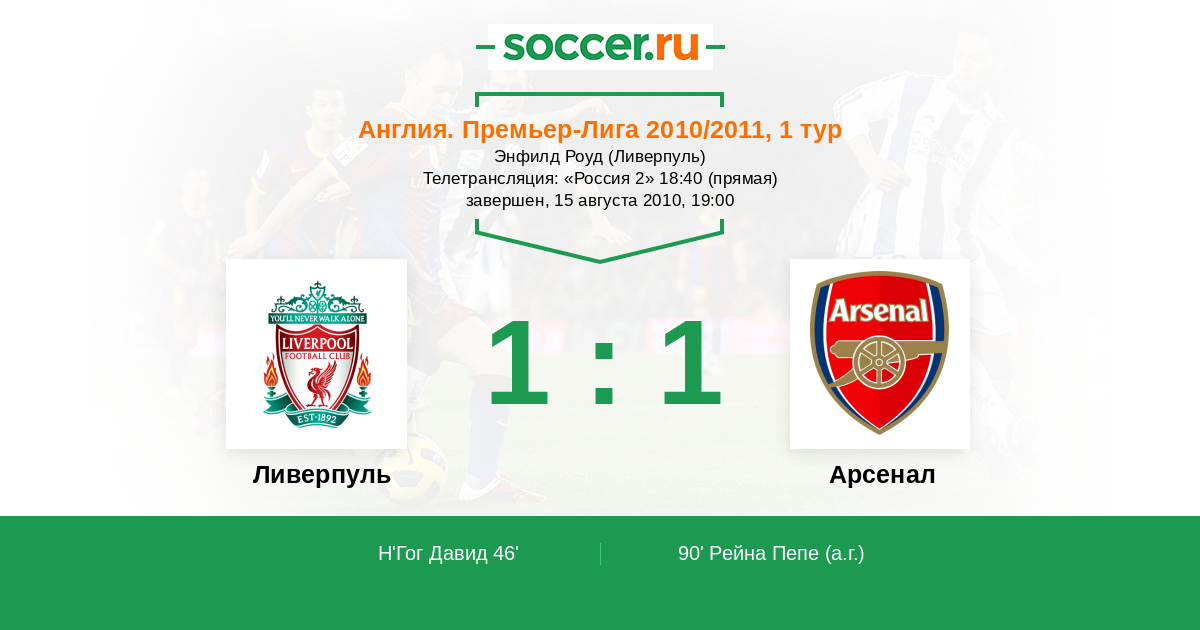 Ливерпуль, Энфилд Роуд Телетрансляция: "Россия 2" 18:40 (прямая)