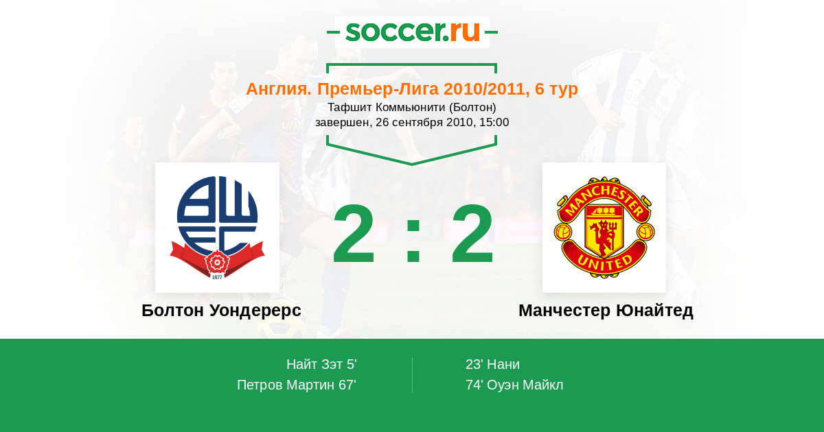 | Болтон Уондерерс | Манчестер Юнайтед | |