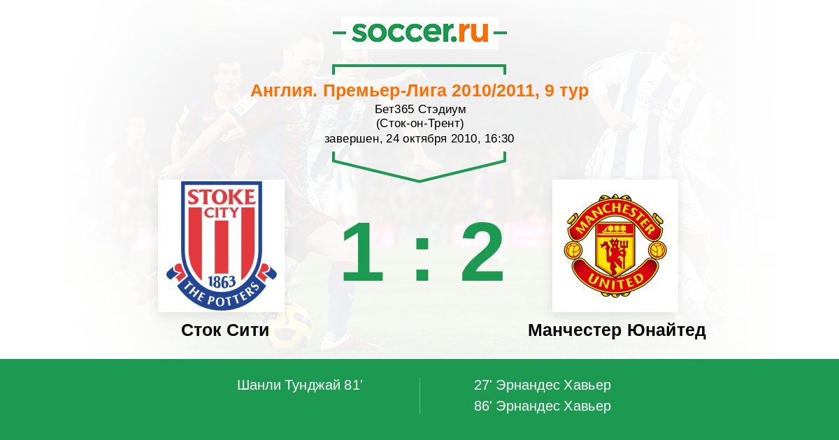 | Сток Сити | Манчестер Юнайтед | |