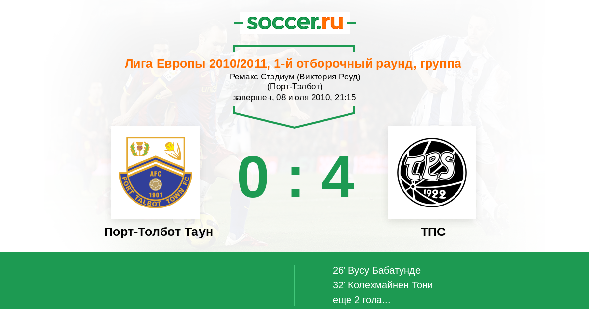 | Порт-Толбот Таун | 1:3 | 0:0 | 1:3 |