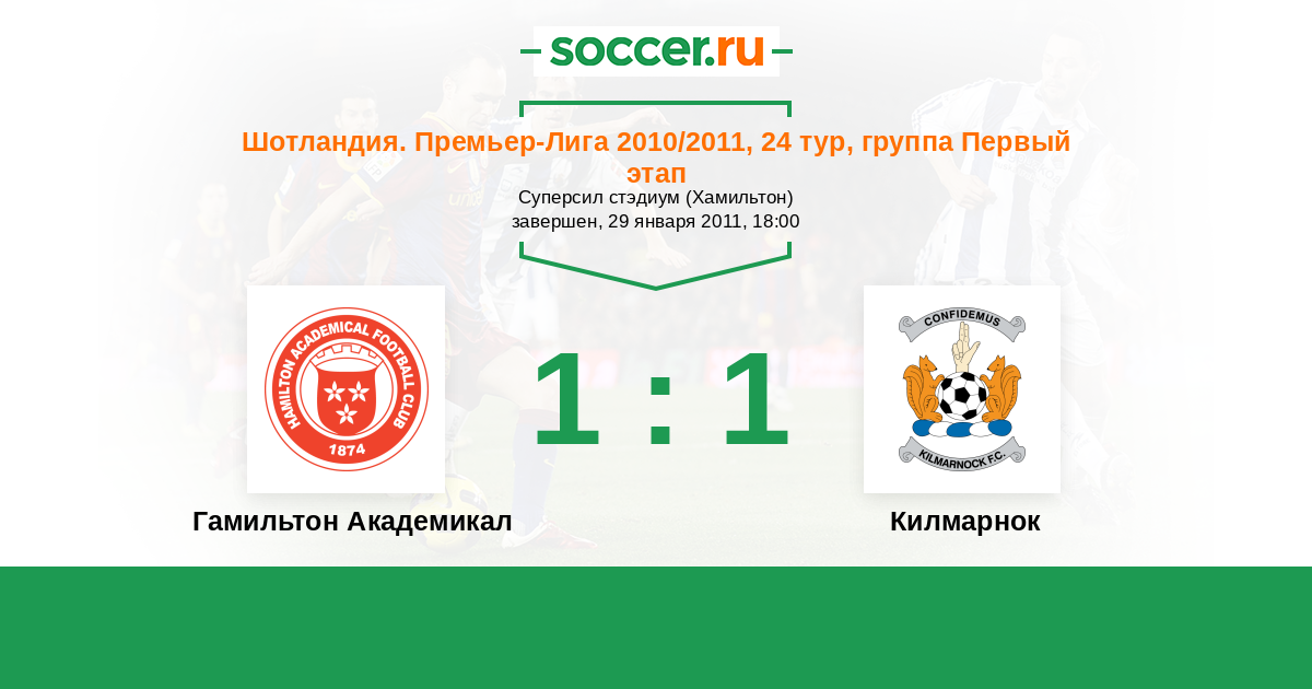 | Гамильтон Академикал | 32:46 | 16:18 | 16:28 |