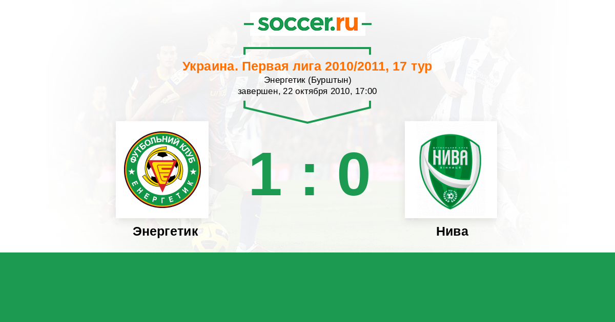 | Энергетик | 1:7 | 0:0 | 1:7 |