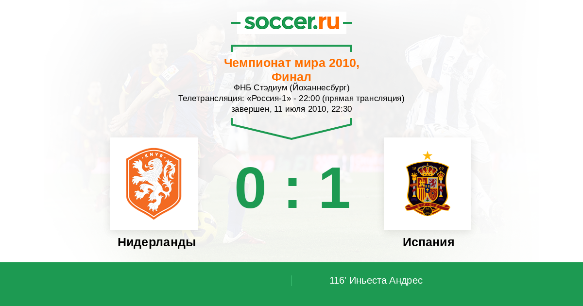 Йоханнесбург, ФНБ Стэдиум Телетрансляция: "Россия-1" - 22:00 (прямая трансляция)