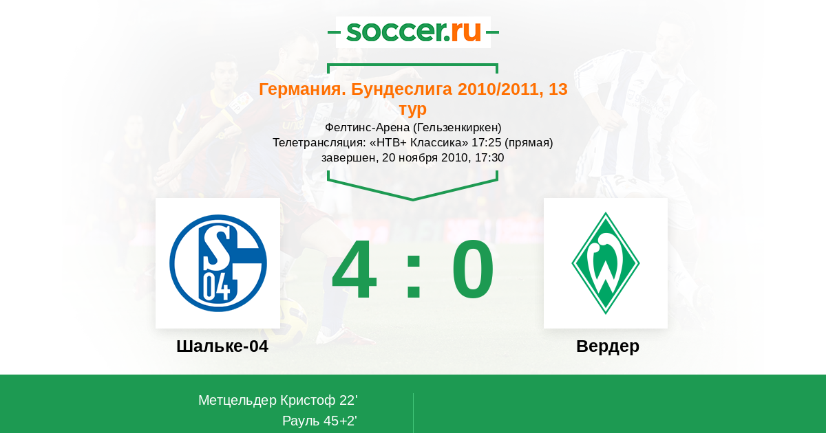 Гельзенкиркен, Фелтинс-Арена Телетрансляция: "НТВ+ Классика" 17:25 (прямая)