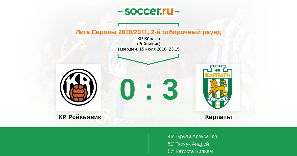| КР Рейкьявик | 2:3 | 0:0 | 2:3 |