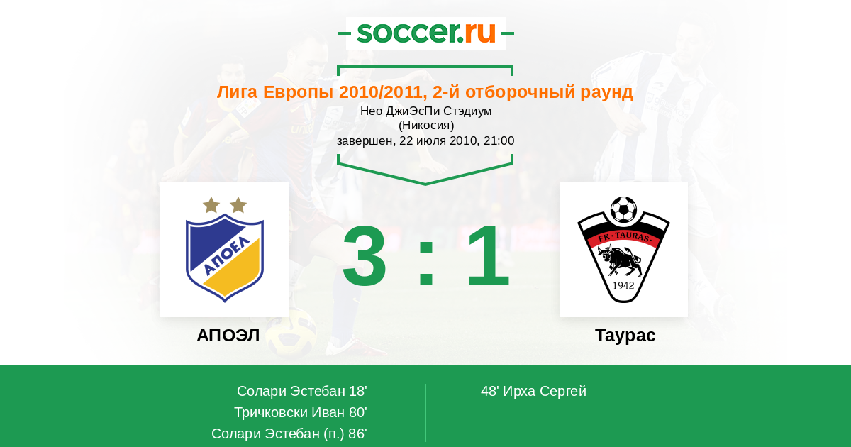 | АПОЭЛ | 3:0 | 0:0 | 3:0 |