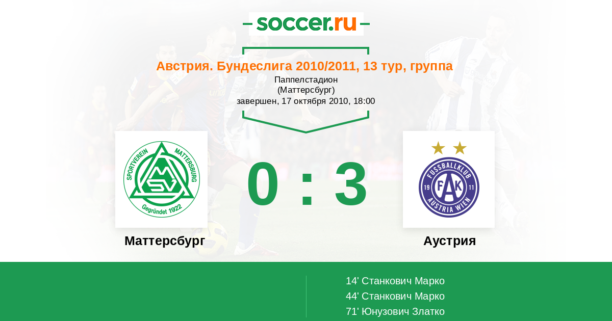 | Маттерсбург | 44:110 | 23:57 | 21:53 |