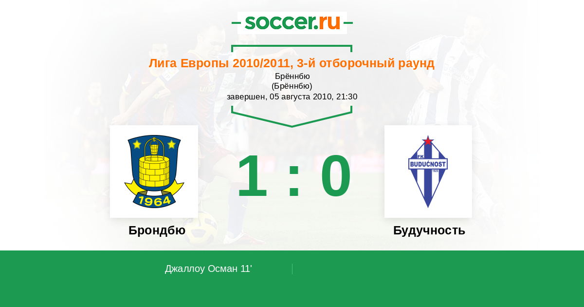 | Брондбю | 2:1 | 0:0 | 2:1 |