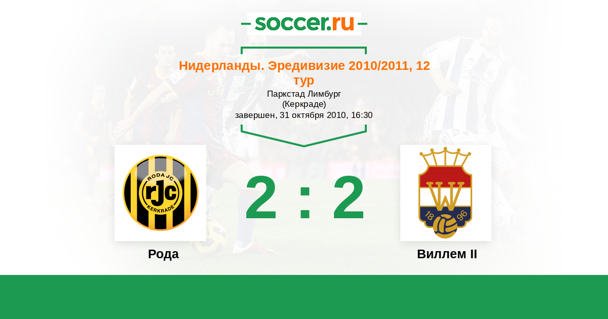 | Виллем II | 29:30 | 17:18 | 12:12 |