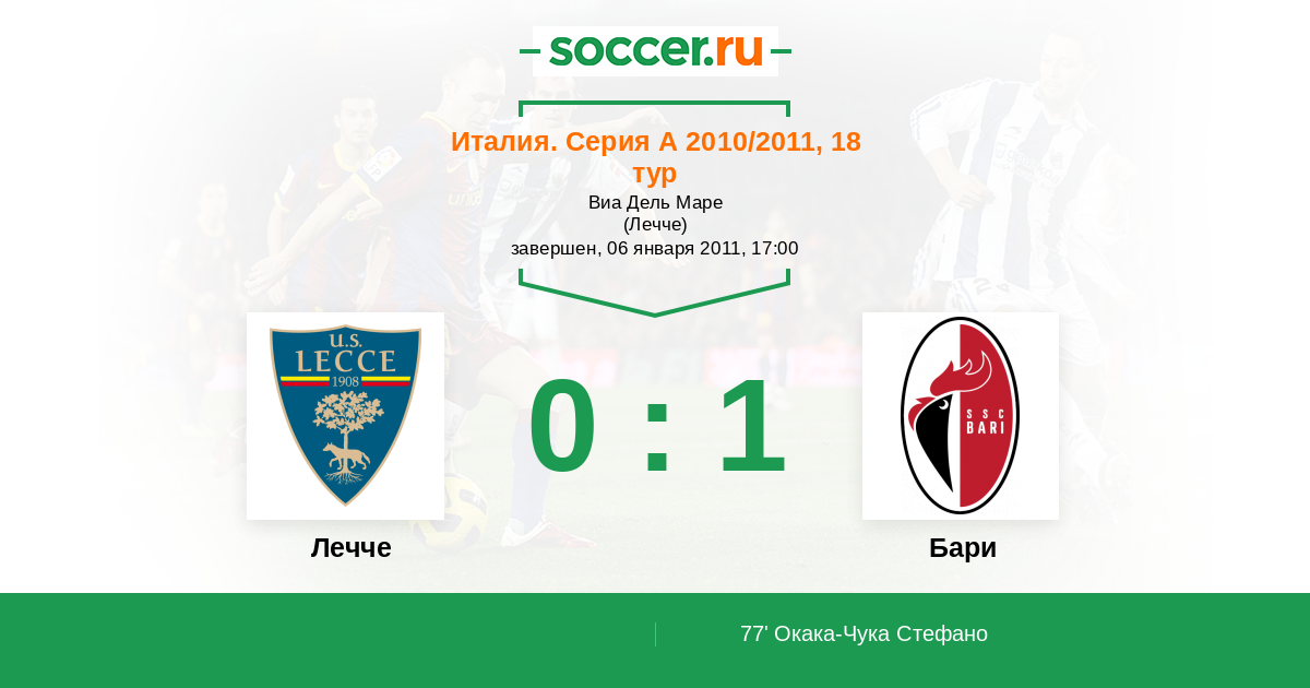 | Лечче | 2:0 | 0:0 | 2:0 |