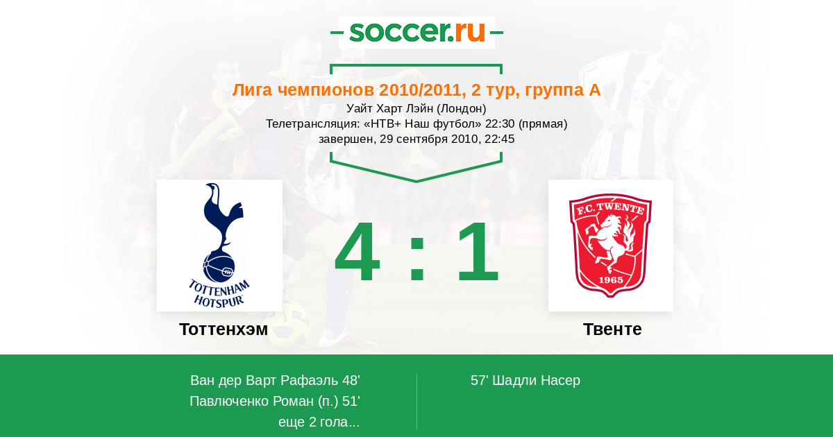 Лондон, Уайт Харт Лэйн Телетрансляция: "НТВ+ Наш футбол" 22:30 (прямая)