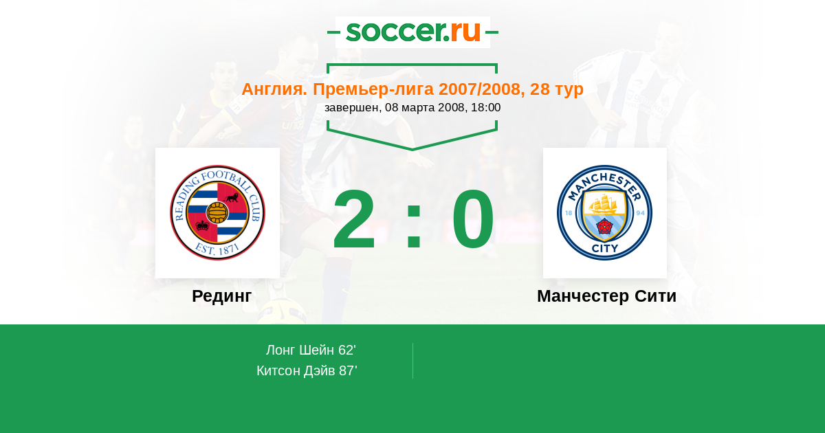 | Рединг | Манчестер Сити | |